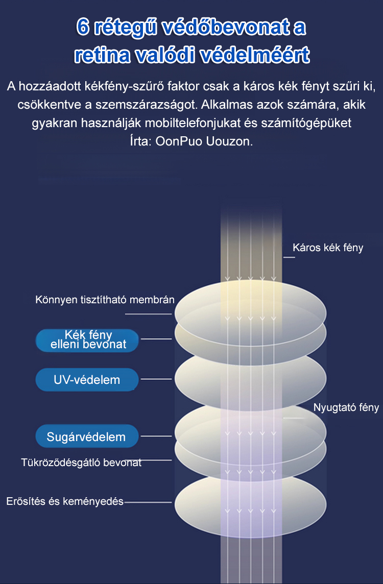 ✨44%-os kékfény szűrés, ≥93%-os fényáteresztő képesség ✅Automatikus látásjavítás közeli és távoli látásra, nincs szükség gyakori szemüvegcserére