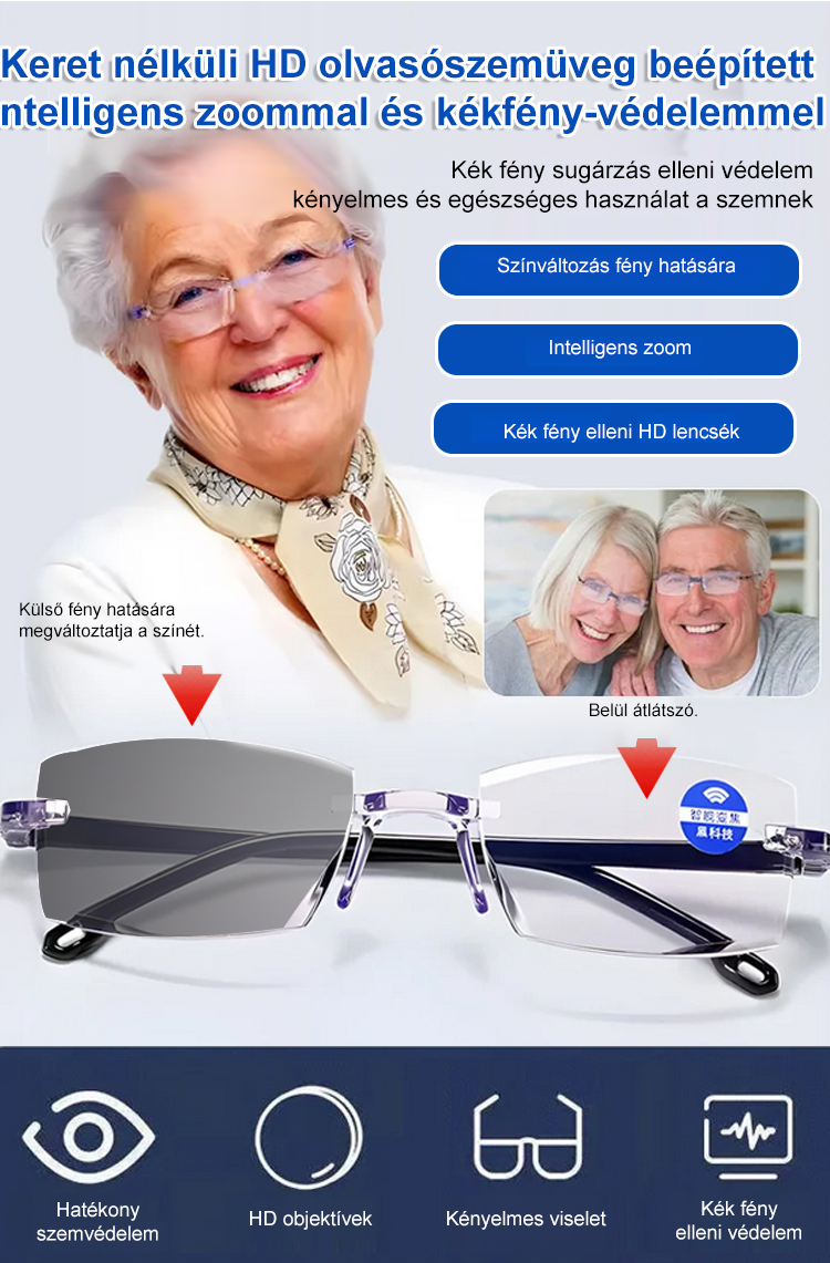 ✨Keret nélküli szemüveg, automatikus látáskorrekcióval 0-1000 dioptriáig