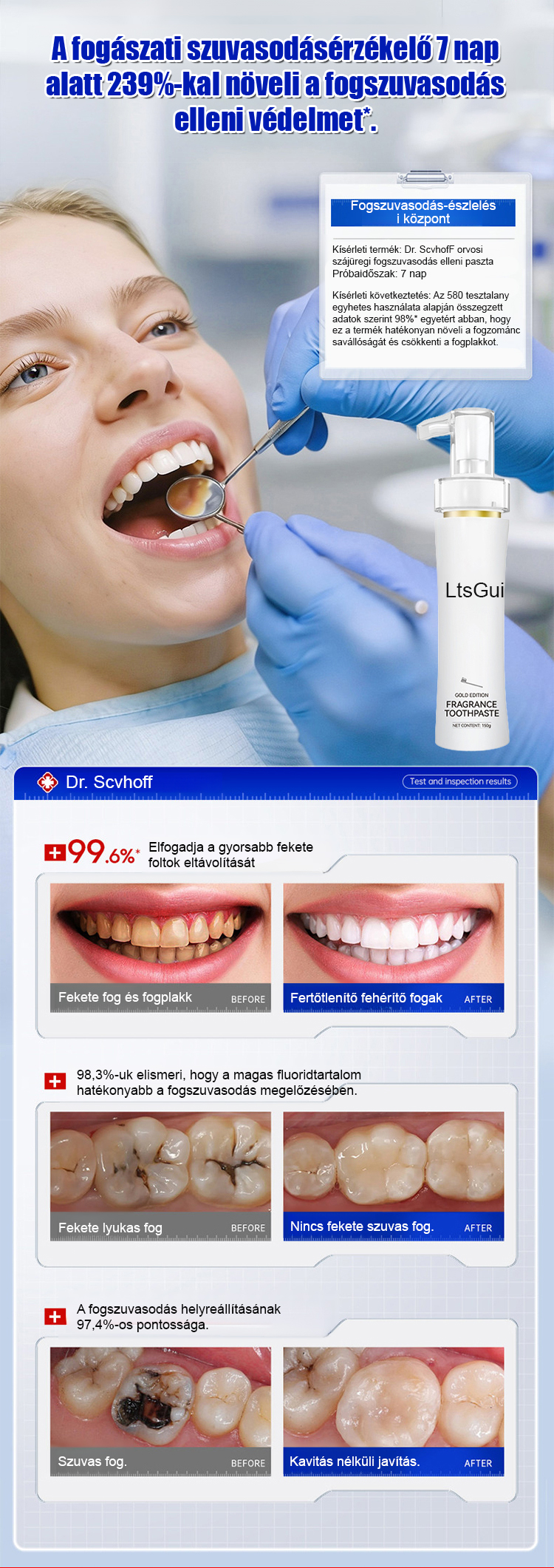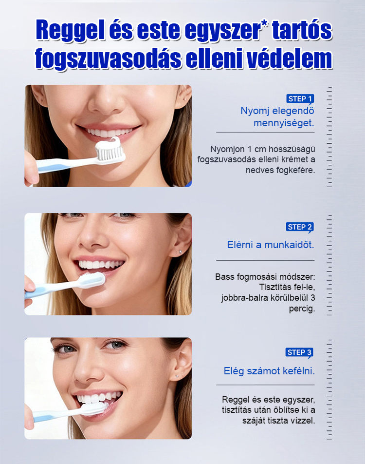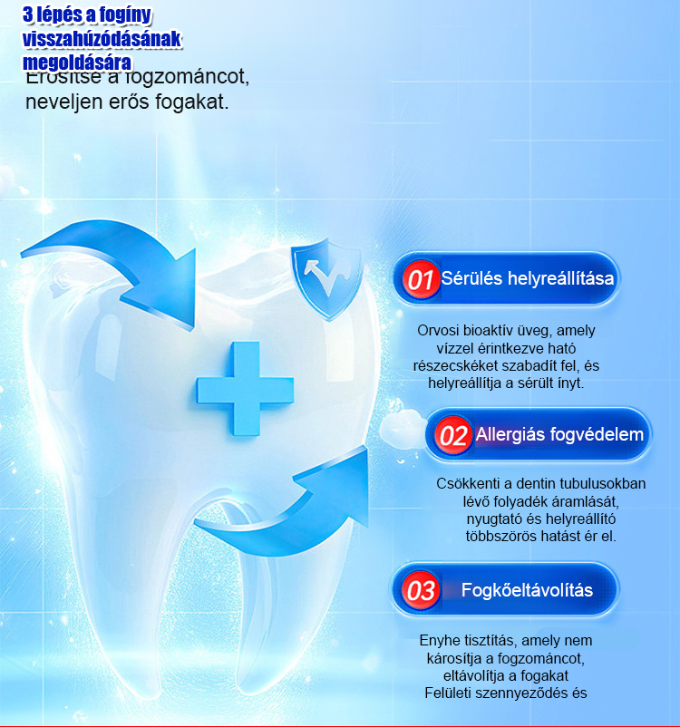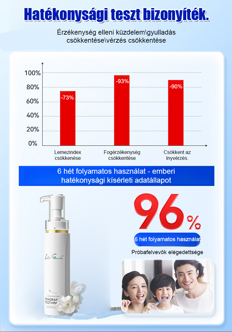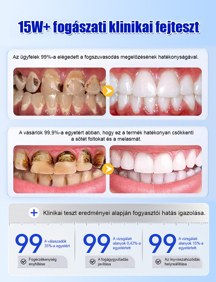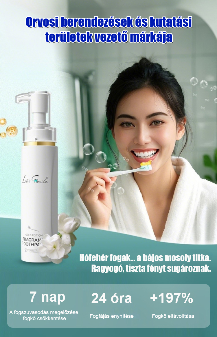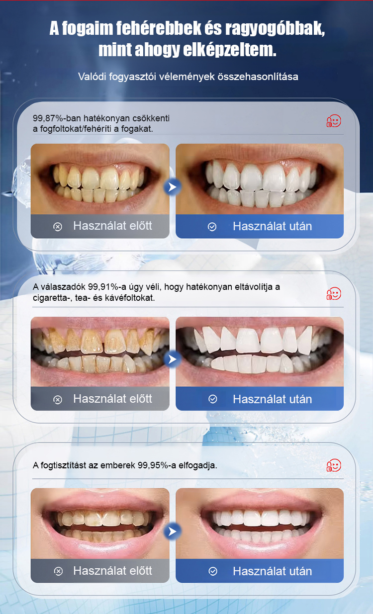 Exkluzív '3 nap fehérítés + 7 nap erősítő helyreállítás' formula, amely mélyen megtisztítja és védi a fogzománcot, természetes ragyogást kölcsönözve fogaidnak! 🔬